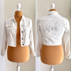 Tolle Jeansjacke mit Herz-Cut-Out aus zarter Spitze, besonders schön bei rückenfreien Brautkleidern, auch nach der Hochzeit tragbar
