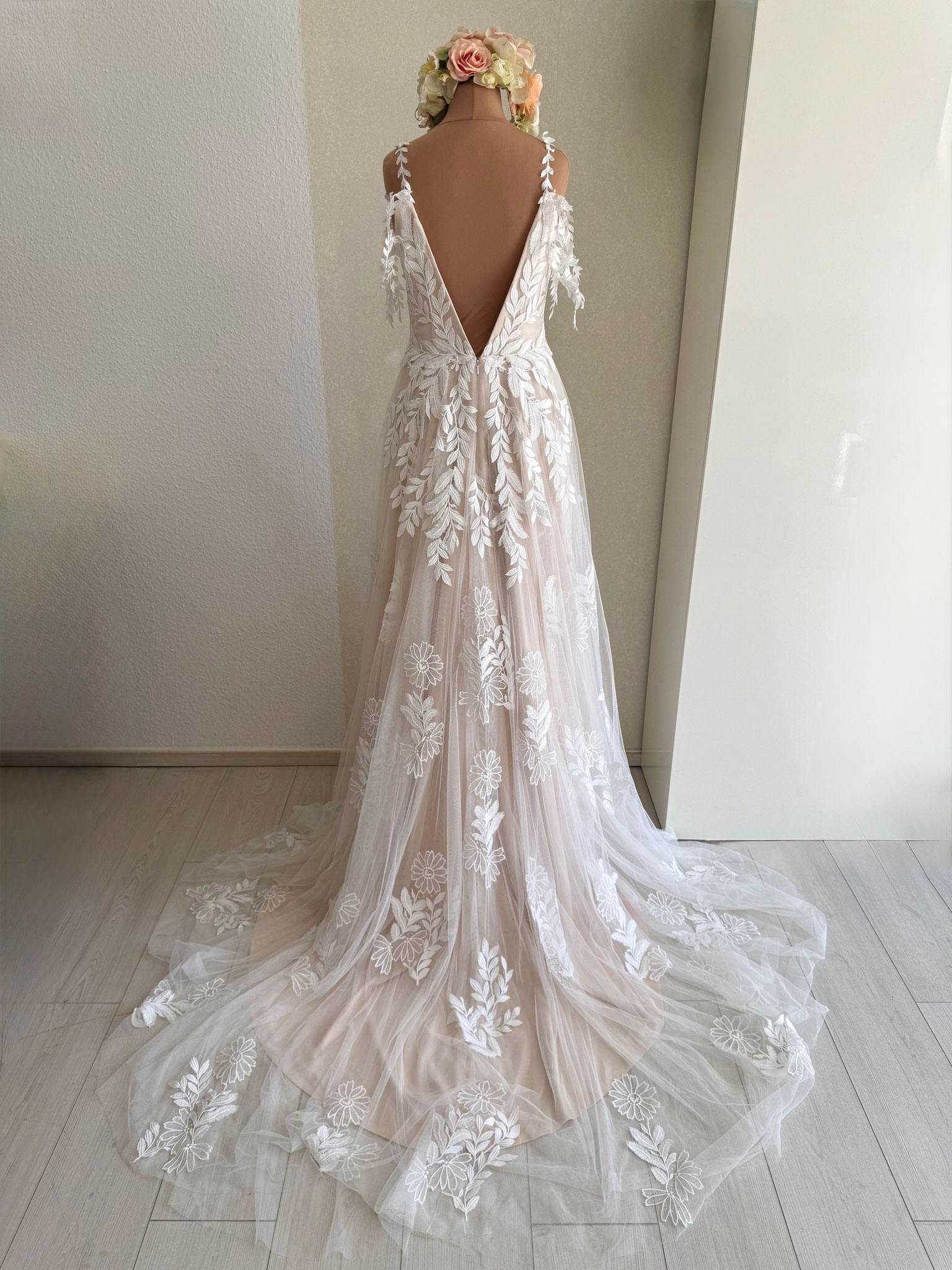 aus Spitze und Tüll in zartem Blushton