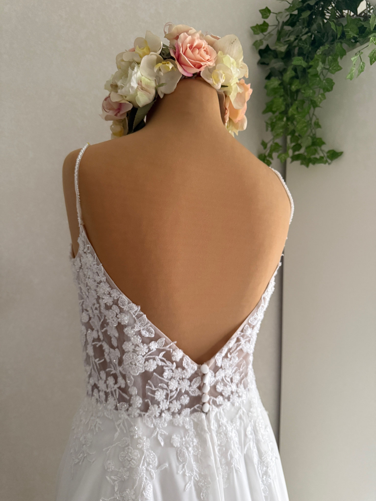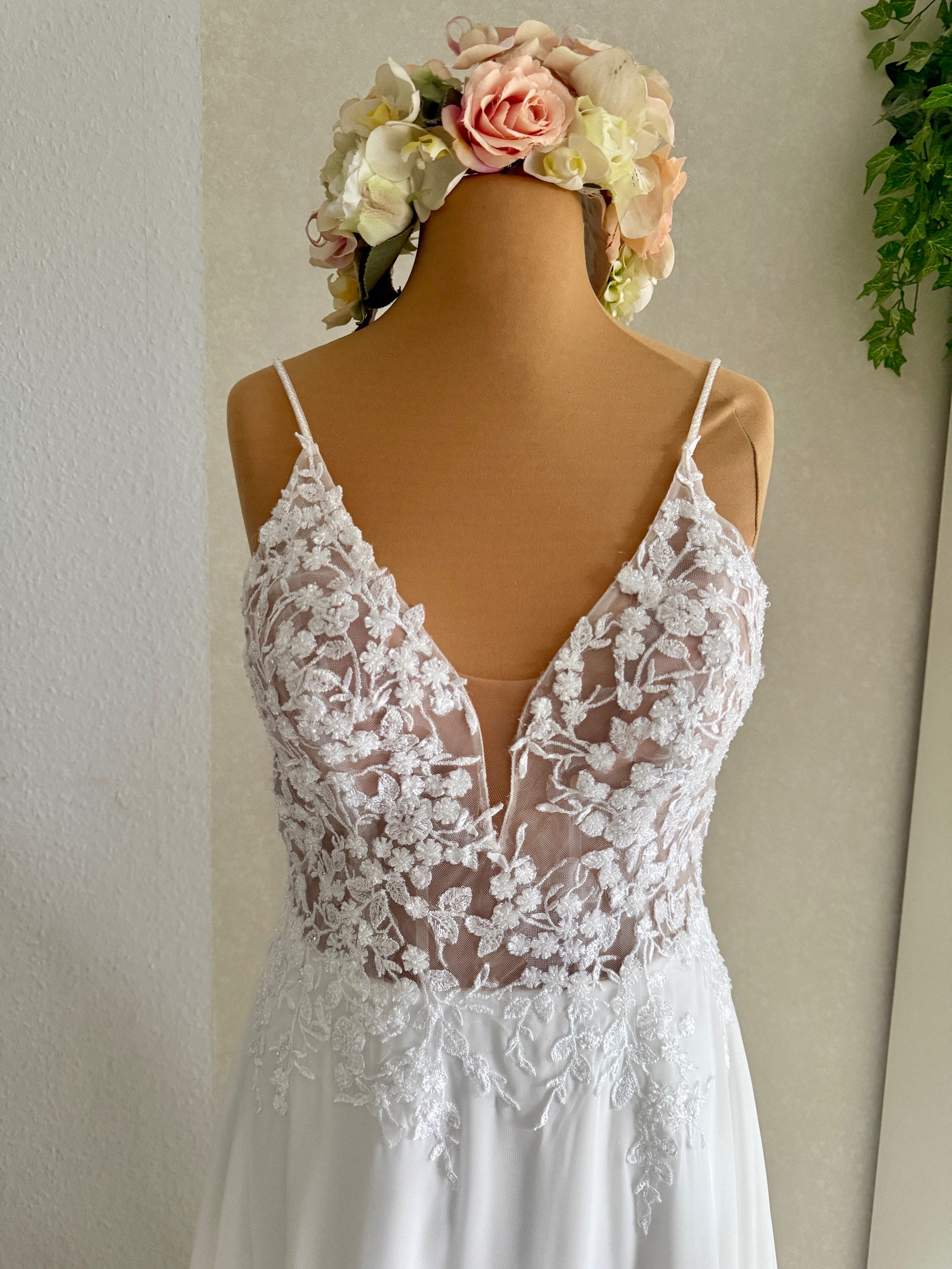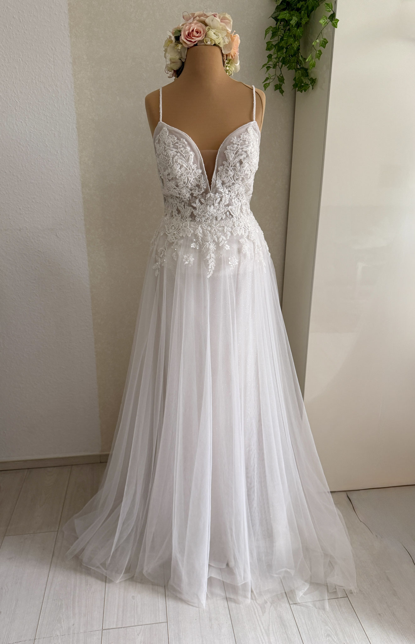 Alle Kleider sind gebraucht und an die jeweilige Braut angepasst worden. Daher fragt bitte ggf. vorher die Maße ab. Die Kleider befinden sich in der Regel bei mir in Berlin Pankow (gute Verkehrsanbindung) oder können kurzfristig von der Besitzerin zu mir gebracht werden. Gern können auch mehrere Kleider anprobiert werden. Bitte einfach vorher ansagen, damit die Wunschkleider vor Ort sind.
