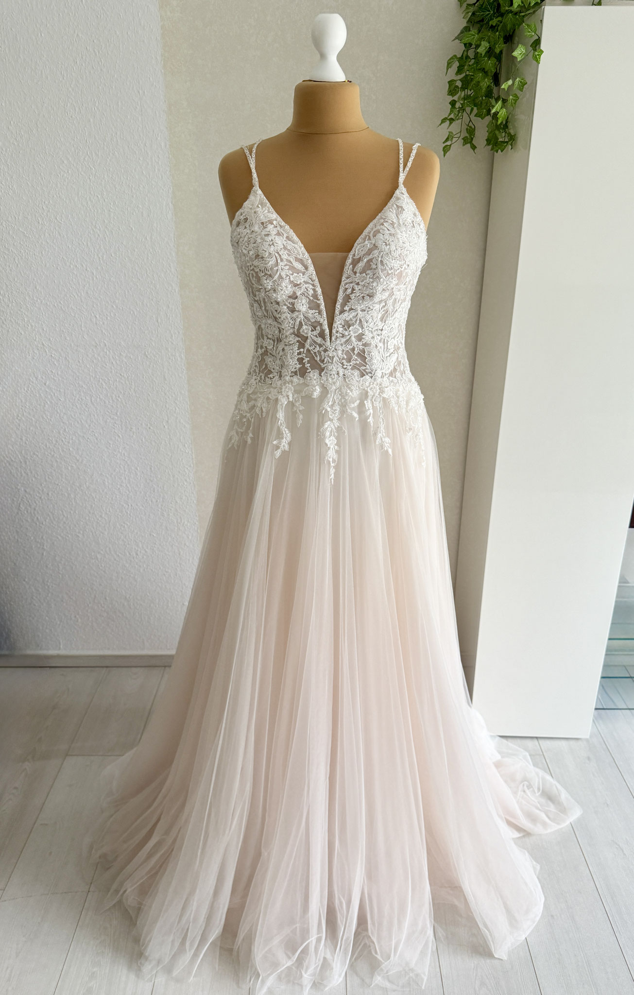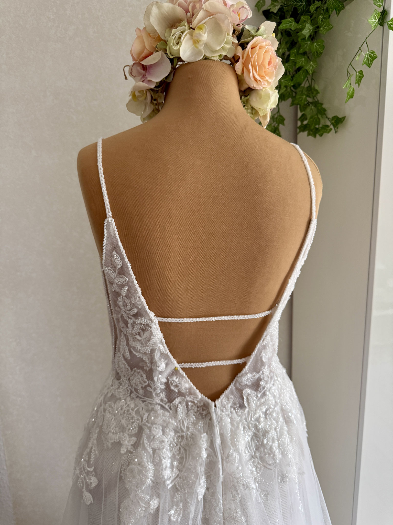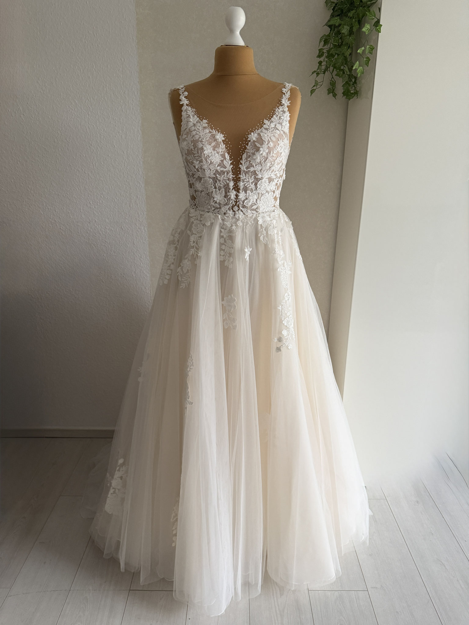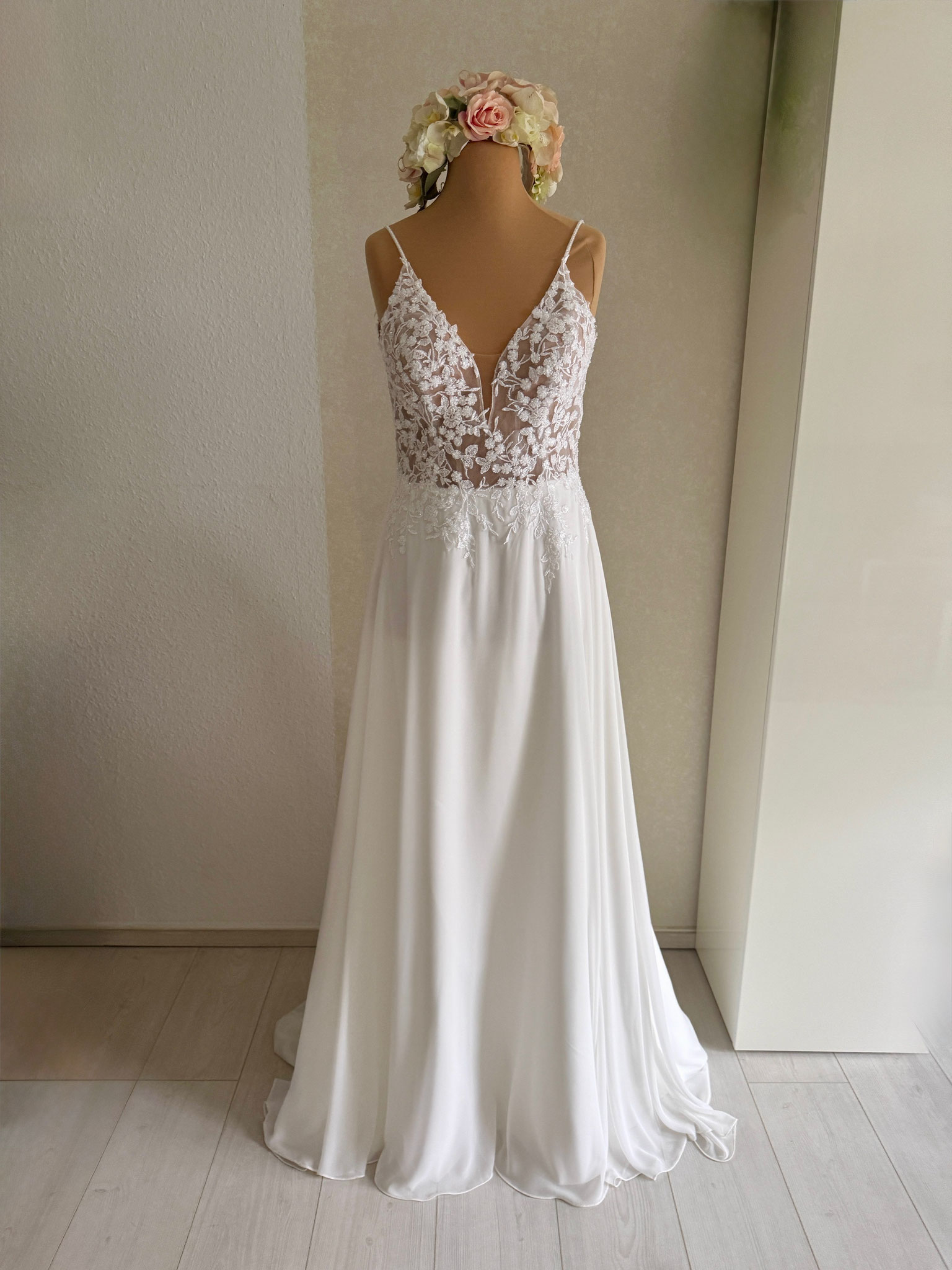 Alle Kleider sind gebraucht und an die jeweilige Braut angepasst worden. Daher fragt bitte ggf. vorher die Maße ab. Die Kleider befinden sich in der Regel bei mir in Berlin Pankow (gute Verkehrsanbindung) oder können kurzfristig von der Besitzerin zu mir gebracht werden. Gern können auch mehrere Kleider anprobiert werden. Bitte einfach vorher ansagen, damit die Wunschkleider vor Ort sind.