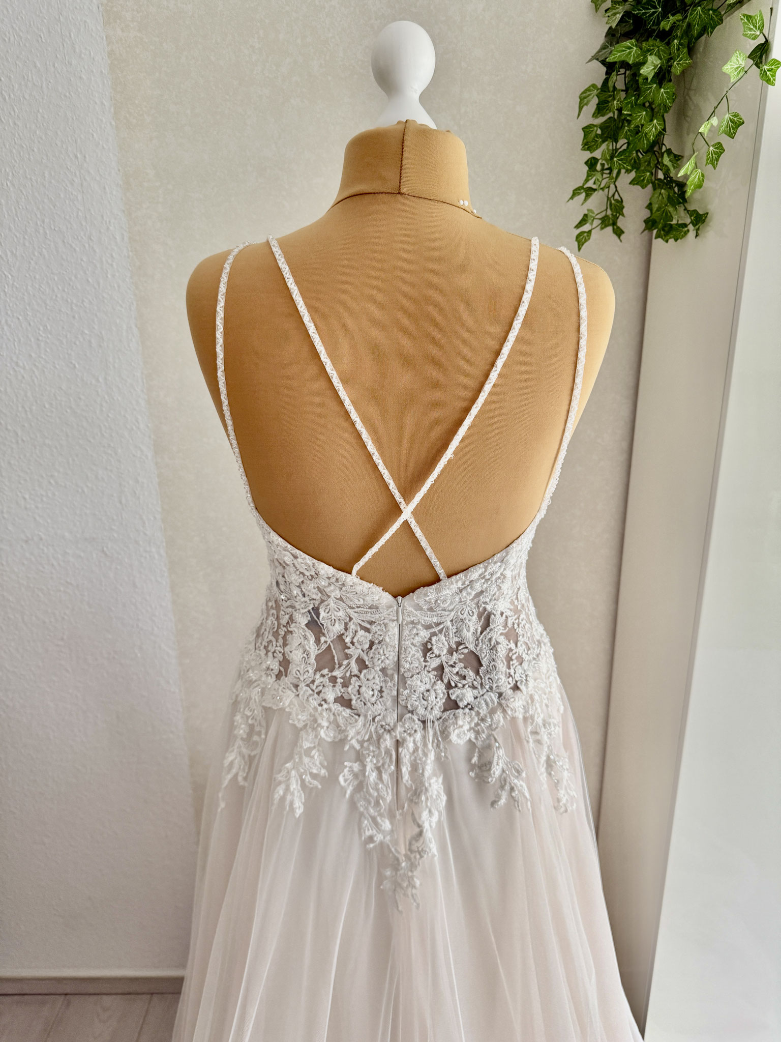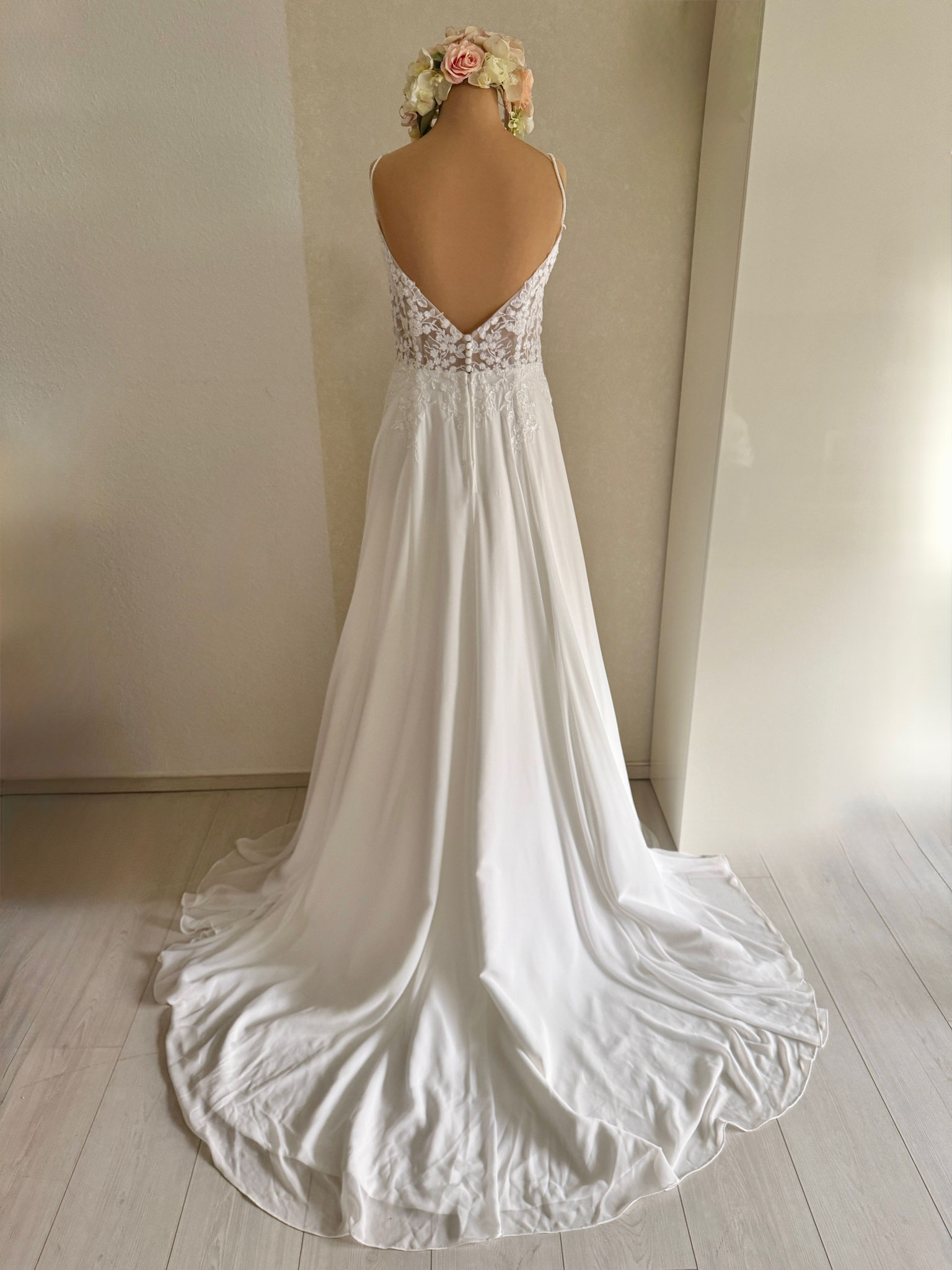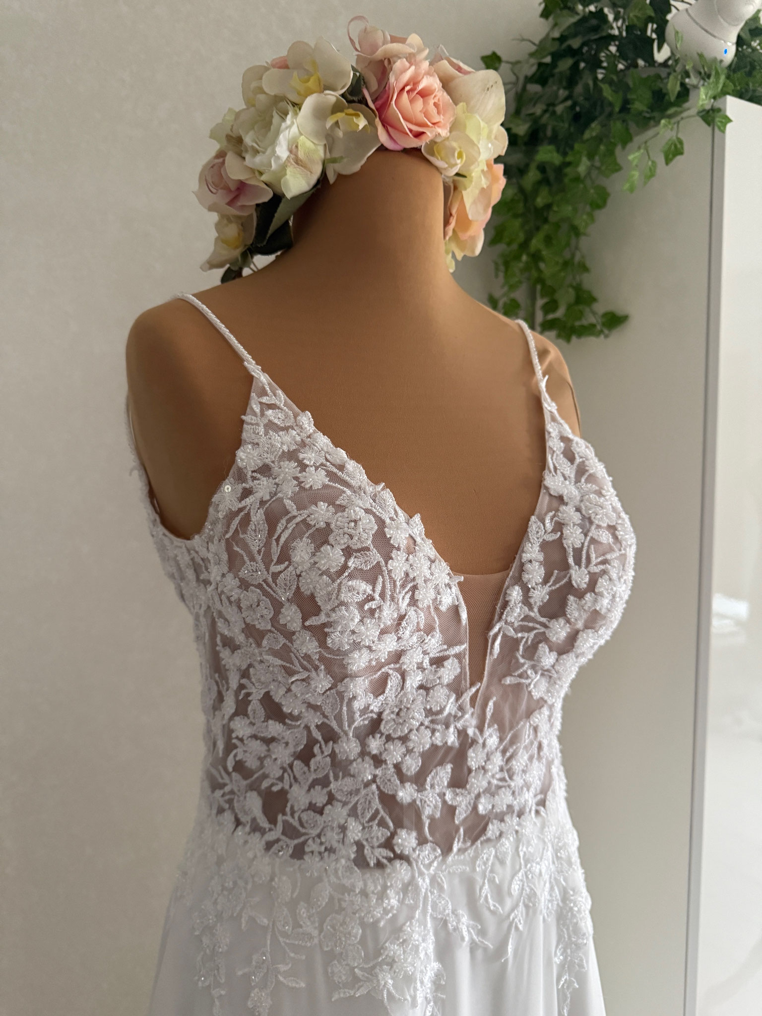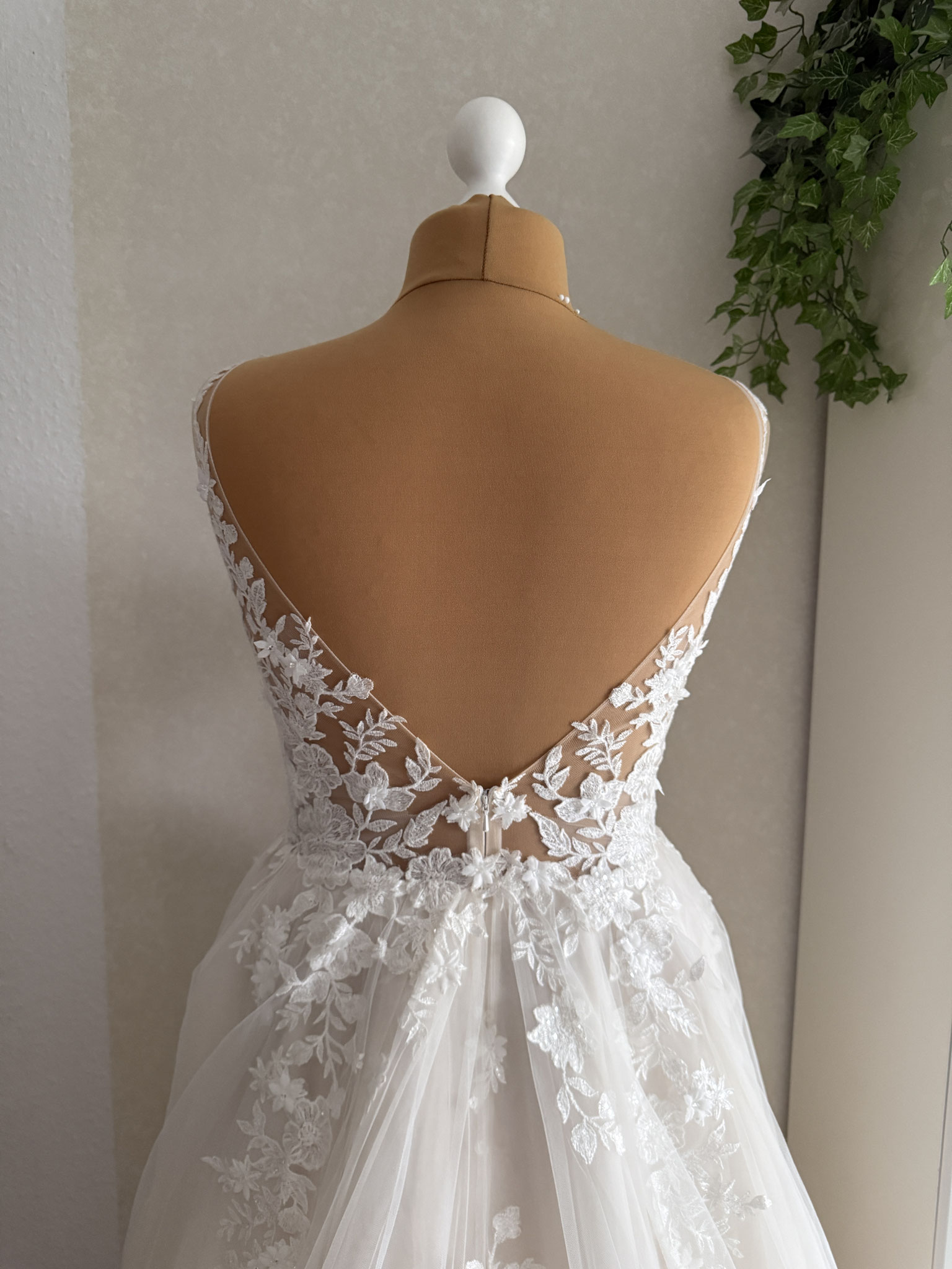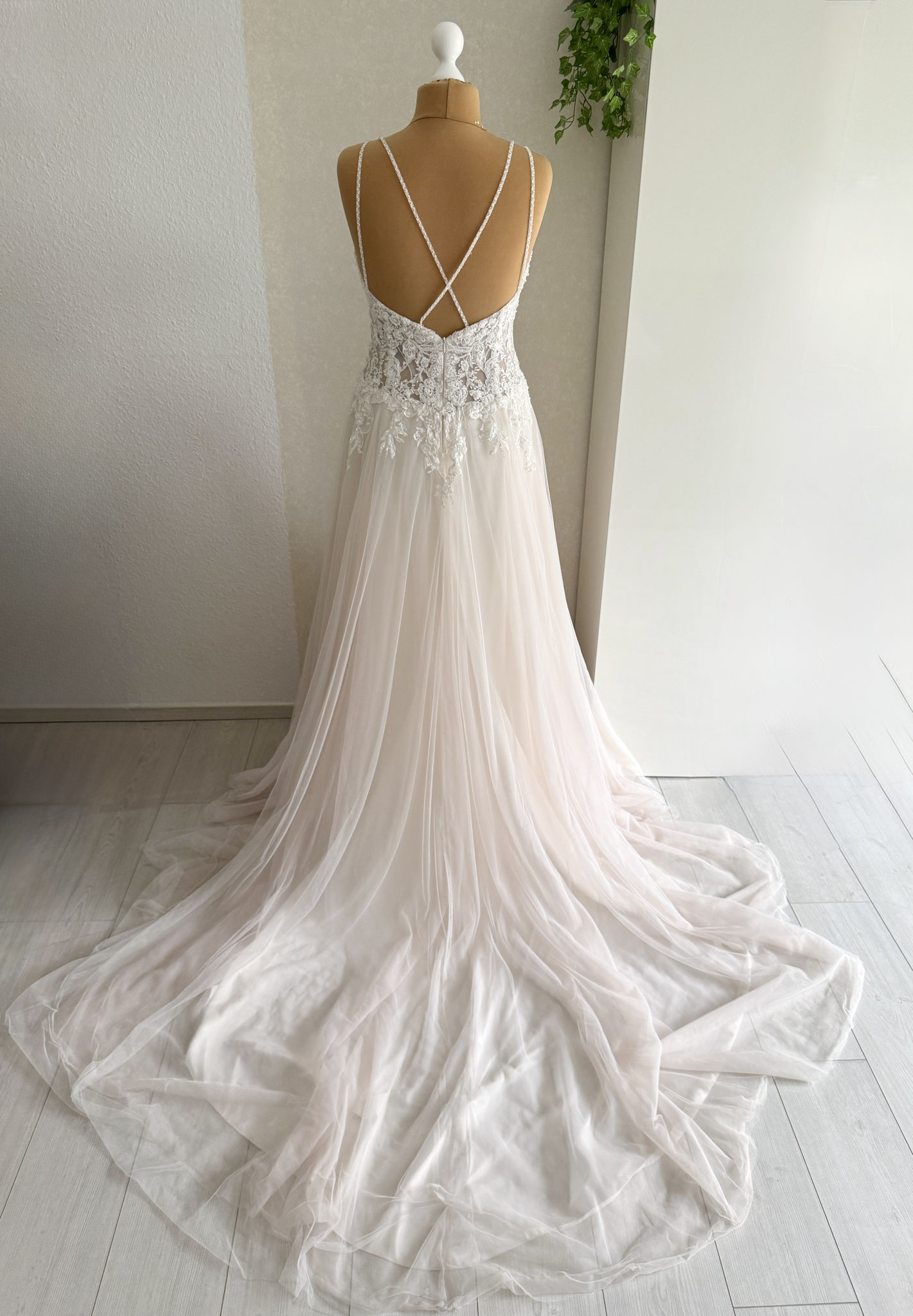 mit tollem Spitzenoberteil und Spitzendetails in der Schleppe.