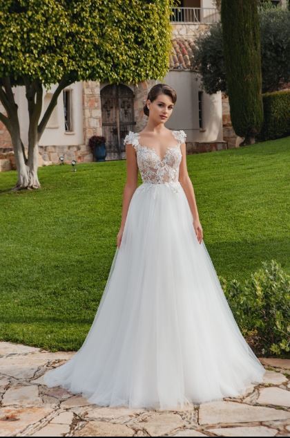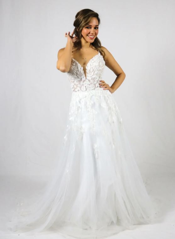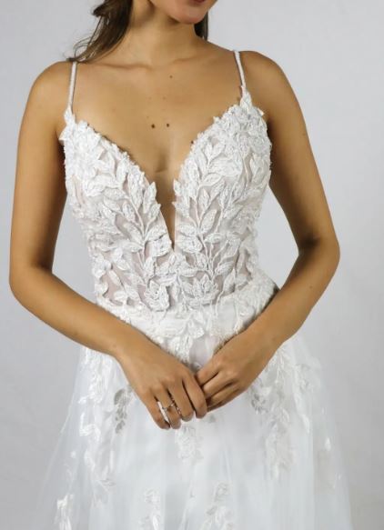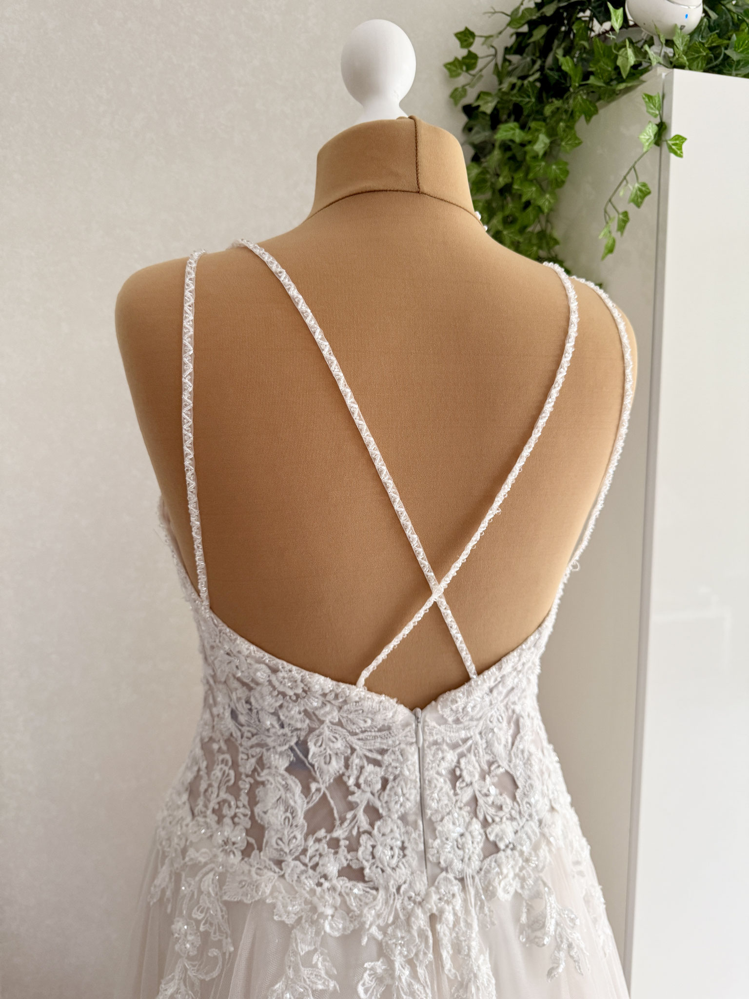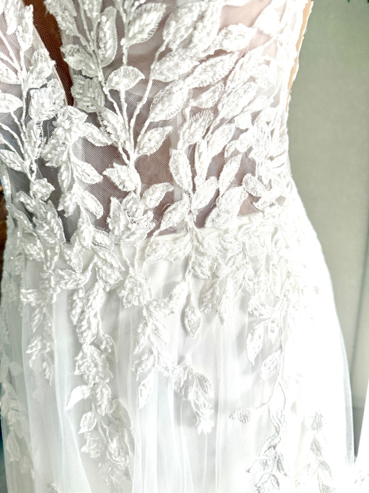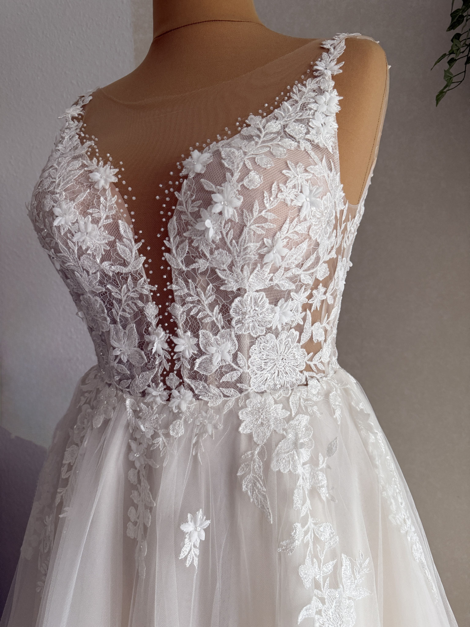 mit tollem Spitzenoberteil und Spitzendetails in der Schleppe.