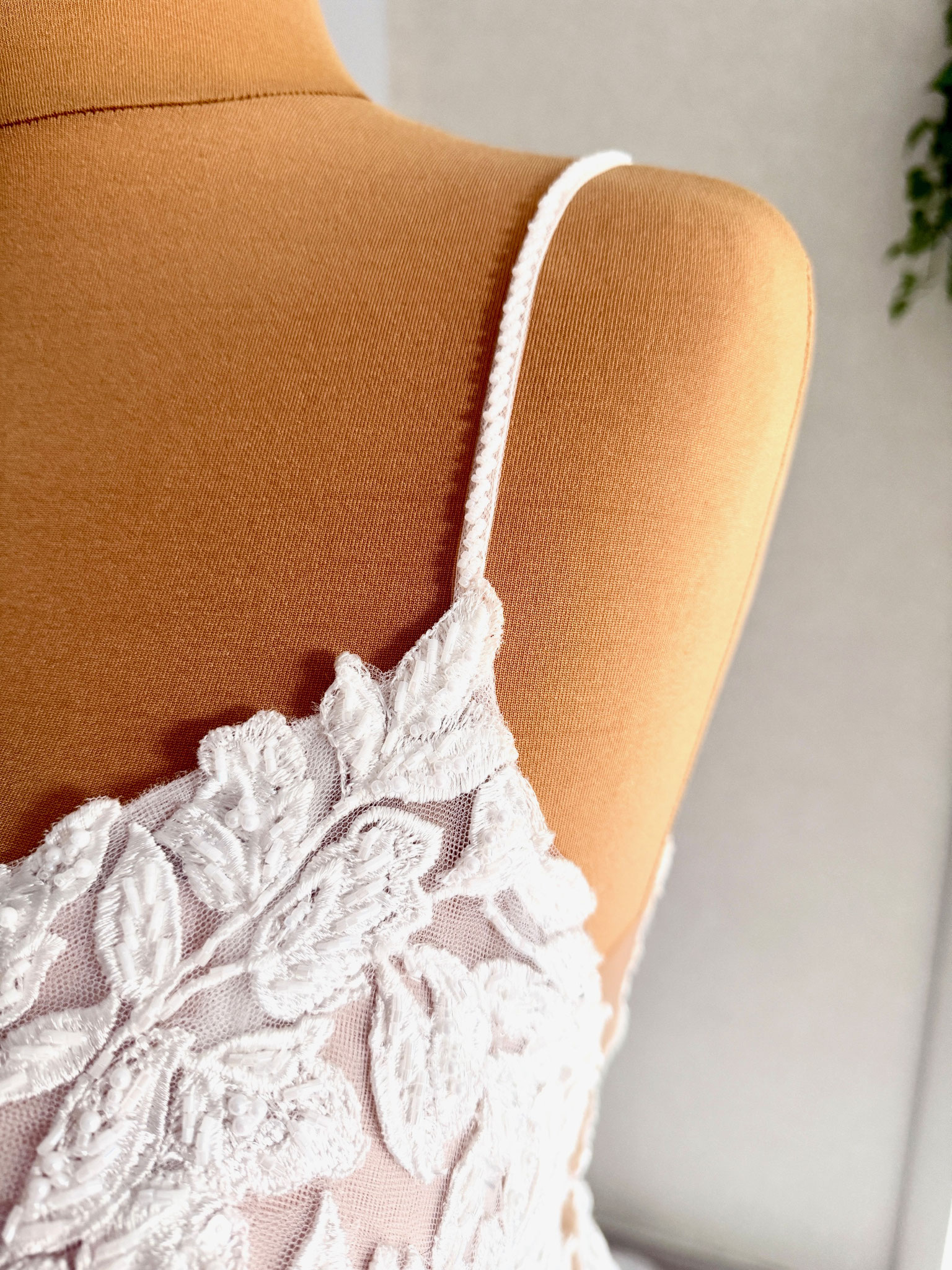 aus Spitze und Chiffon mit zarten Spaghettiträgern
